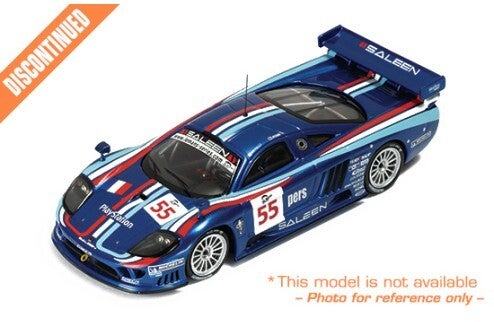 Dit gedetailleerde model bevat de blauw-witte Playstation-livery, de sponsorafbeeldingen en de onderscheidende kenmerken van de Saleen S7R. Het is een must-have voor Saleen-fans, verzamelaars van endurance-racewagens, en liefhebbers van historische Le Mans-style racing.